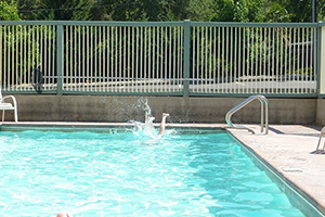 Our outdoor seasonal pool is equip with an ADA pool lift and obstacle free patio surround. Users of the pool lift will need to stop by the lobby for assistance with battery and chair cover.